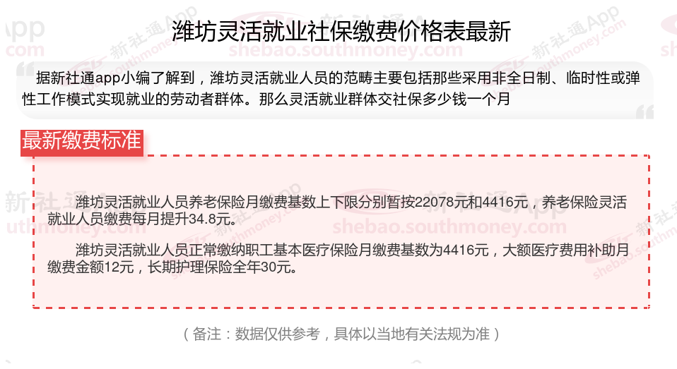 据新社通app数据显示,潍坊灵活就业养老保险缴费基数2024-2025年最新标准如下: