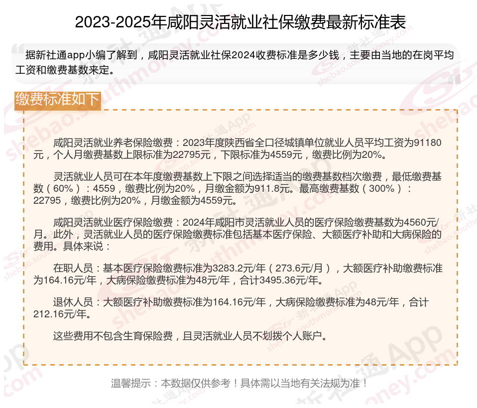 一、咸阳2025年灵活就业社保缴费基数及比例