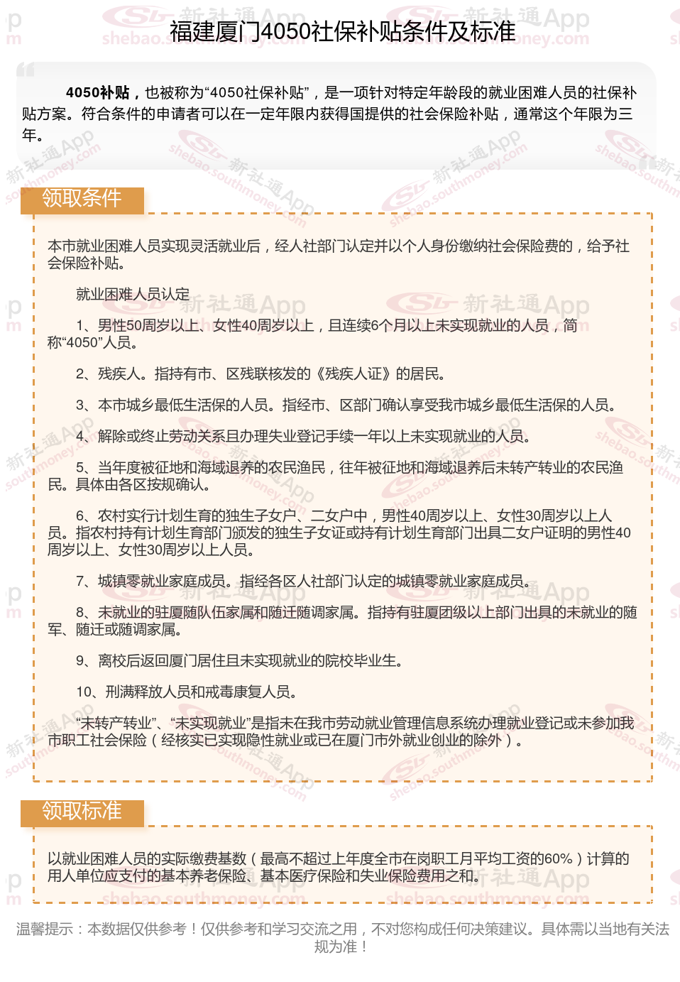 二、福建厦门4050社保补贴标准及条件2025年最新消息