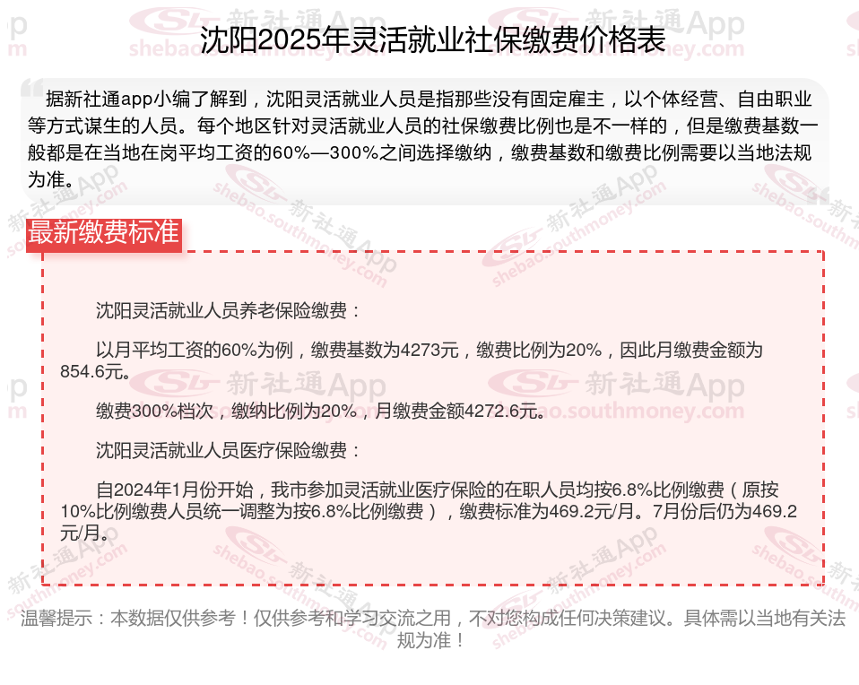 二、沈阳2025年灵活就业社保缴费基数及比例