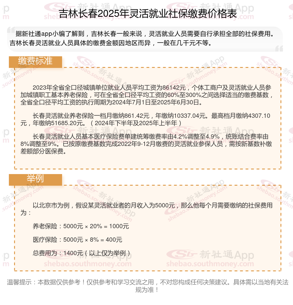 2025年吉林长春灵活就业社保缴费标准多少钱一个月?