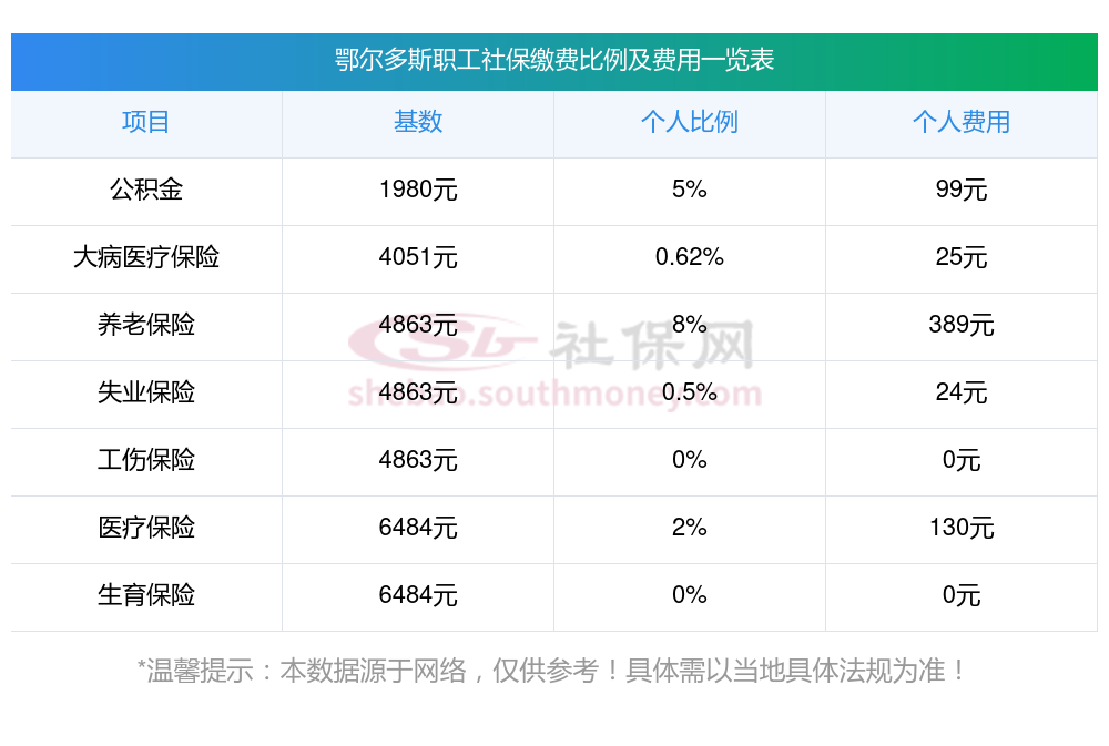 职工社保缴纳和待遇是怎么样的?2025年鄂尔多斯社保缴费标准有变?据新社通app获悉:鄂尔多斯企业职工社保缴费基数为:3579.00元。
