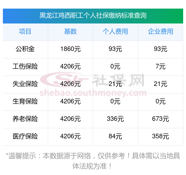 和新社君一起来了解下:黑龙江鸡西五险一金交多少钱一个月?怎么算?2024-2025年黑龙江鸡西社保费用明细参考,新社通app-社保缴费查询工具提供的最新数据如下: