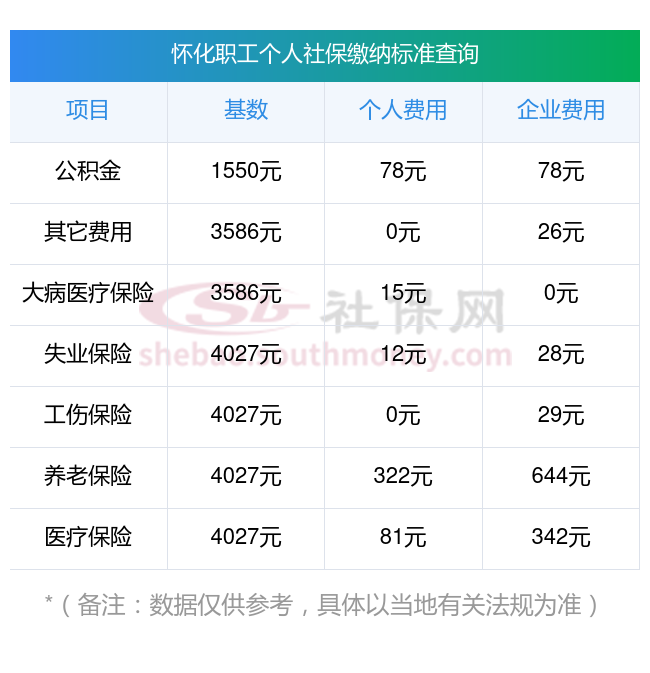 怀化个人社保缴费基数最新标准公布新社通app小编缴费查询工具提供的最新数据如下: