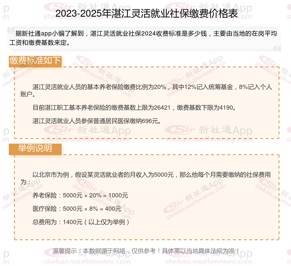 湛江灵活就业人员社保缴费最低标准是多少?灵活就业人员的社保缴费金额受到多种因素的影响,包括个人收入、缴费基数、缴费比例以及所在地区的具体方案。下面随新社通app小编一起了解详情吧。
