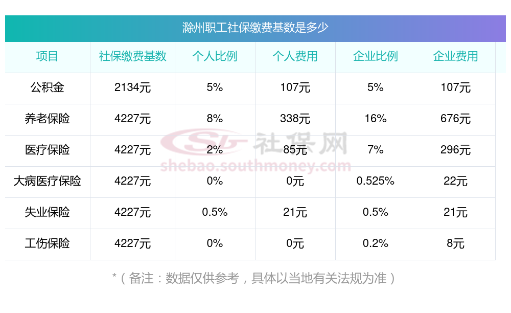 滁州社保最低基数2025是多少,下表是2024-2025年滁州社保费用明细参考,新社通app-社保缴费查询工具提供的最新数据如下: