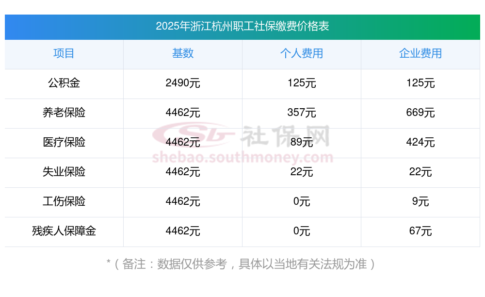 2025年浙江杭州社保缴费多少钱?下表是2024-2025年浙江杭州社保费用明细参考,新社通app-社保缴费查询工具提供的最新数据如下: