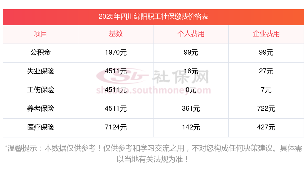 四川绵阳个人最低五险一金自己交多少?2025年社保缴费价目表,下面和社保小编一起来了解下2024-2025年四川绵阳最低配社保费用明细参考,新社通app-社保缴费查询工具提供的最新数据如下: