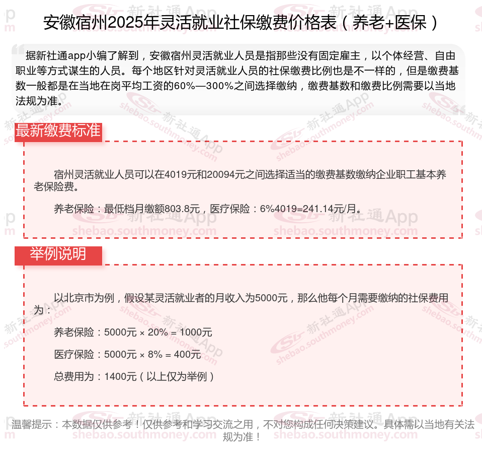 一、安徽宿州2025年灵活就业社保缴费基数及比例