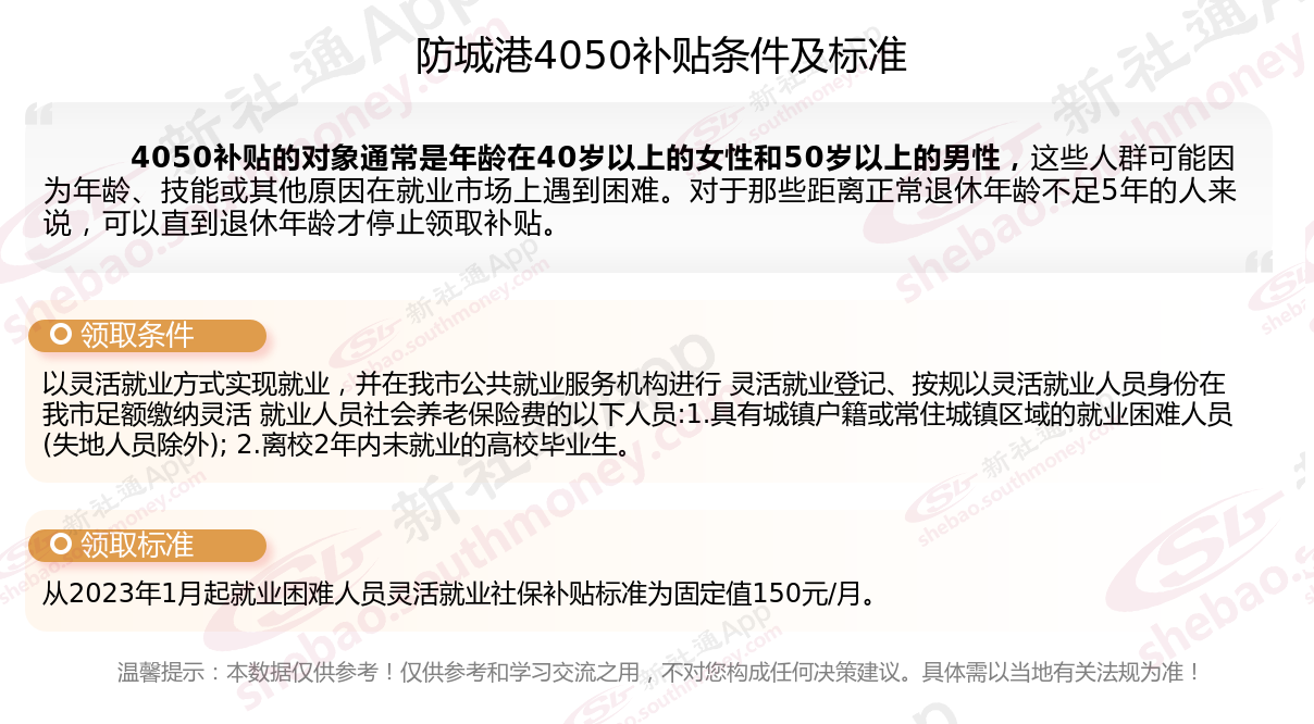 一、2025年防城港灵活就业4050社保补贴标准及条件是什么(灵活就业4050社保补贴多少钱)