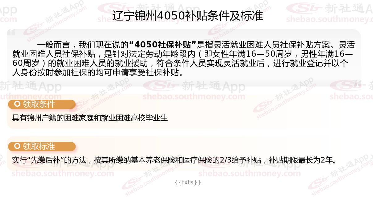 二、2025年辽宁锦州灵活就业4050社保补贴标准及条件是什么