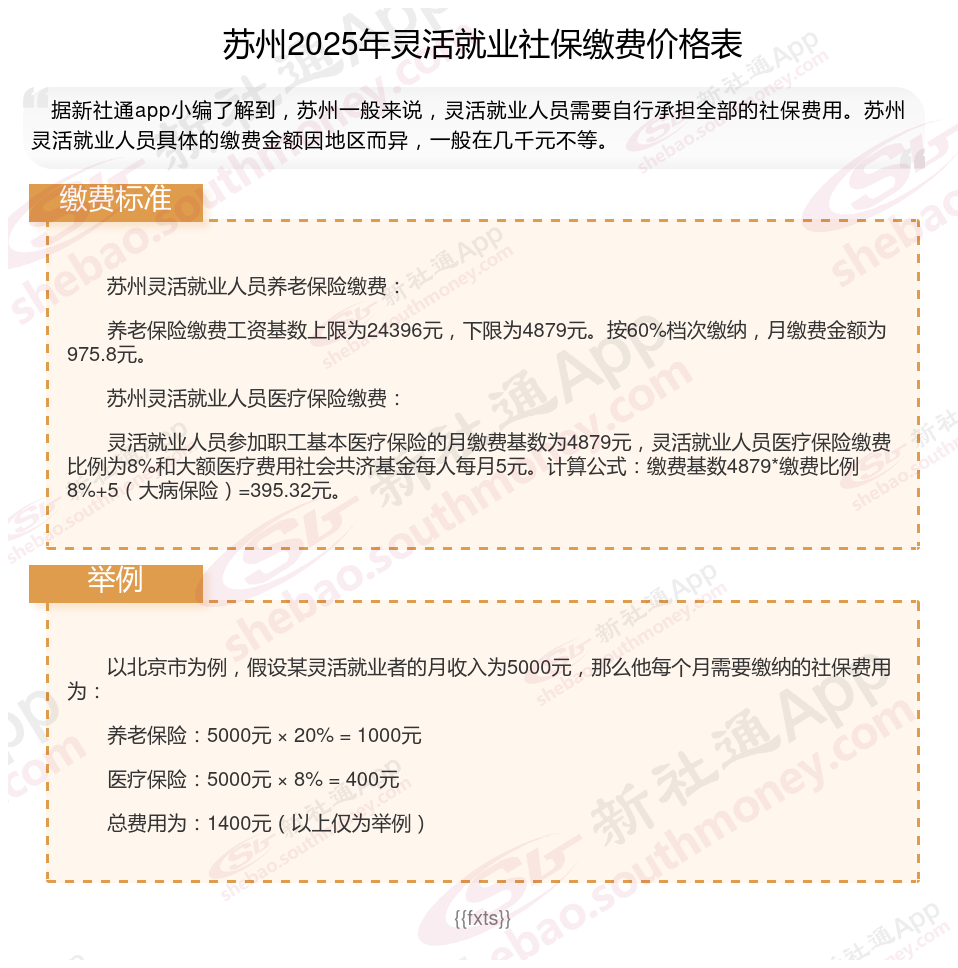 一、2024-2025年苏州灵活就业社保缴费标准表苏州灵活就业社保多少钱一个月?