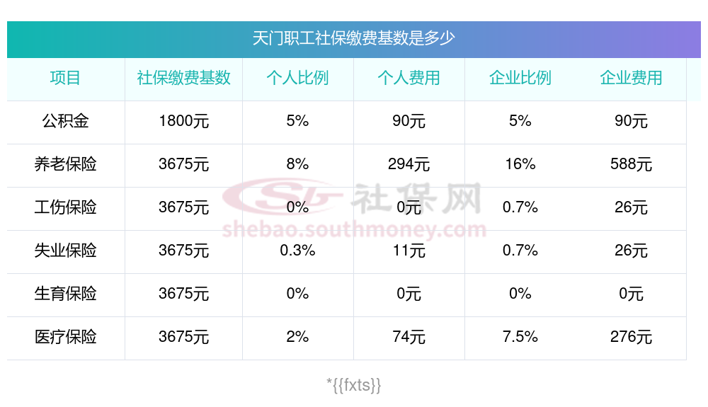 天门职工社保缴费多少钱一个月?天门职工和公司社保各交多少钱?