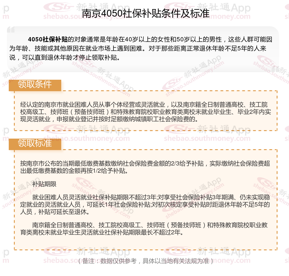 二、2025年南京4050社保补贴标准,最新领取条件来了