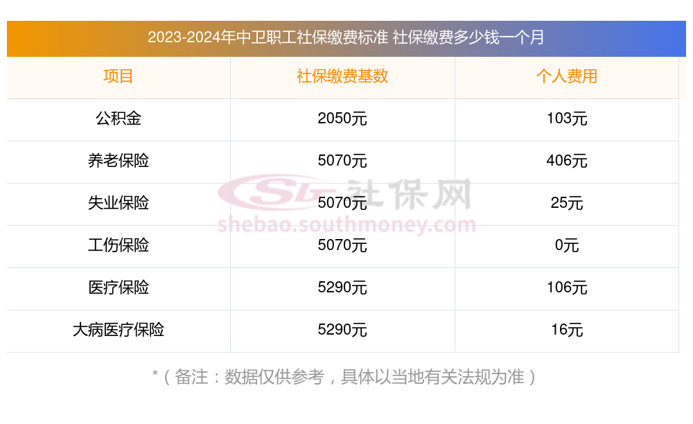 中卫五险一金交多少钱一个月?和新社-app一起来看看2024-2025年中卫社保费用明细参考,新社通app-社保缴费查询工具提供的最新数据如下: