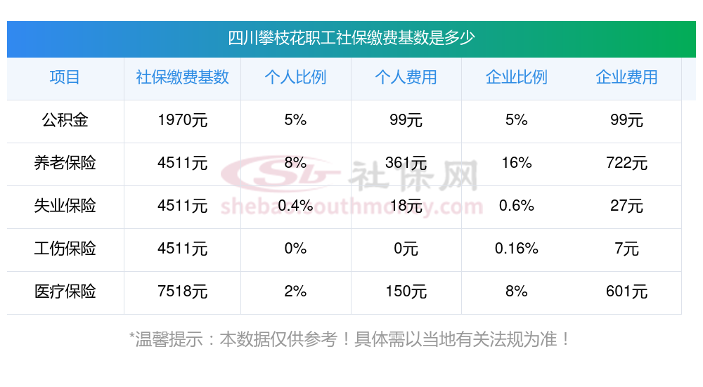 2025年四川攀枝花社保缴费最新标准是多少?新社通app-社保缴费查询工具提供的最新数据如下: