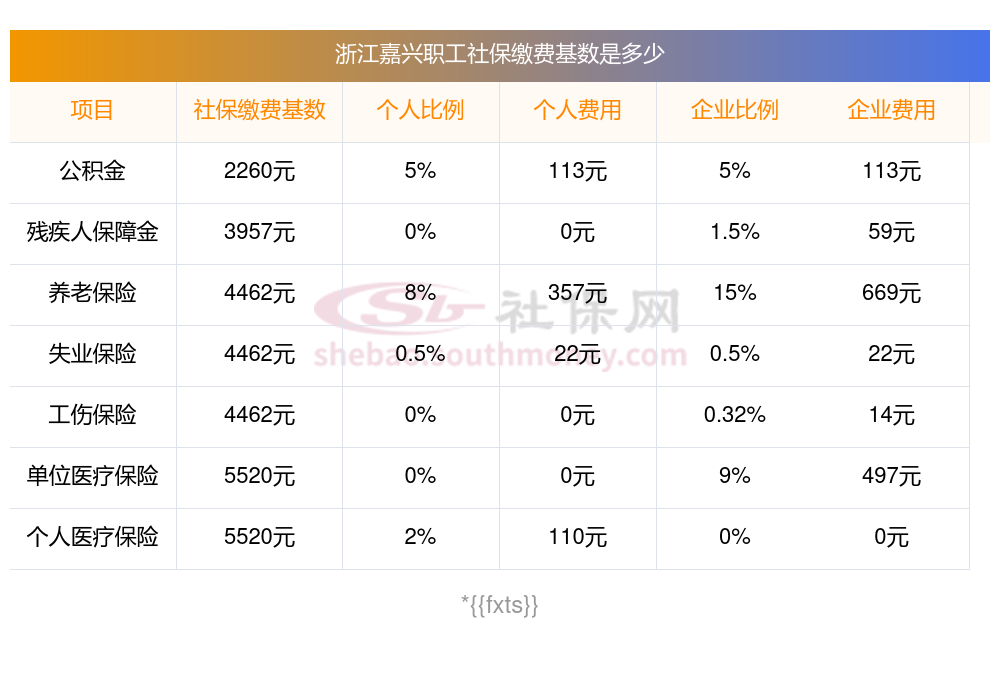 据新社通app显示,浙江嘉兴社保缴费基数2025年标准,(社保最低一个月要交多少钱)浙江嘉兴社保费用如下: