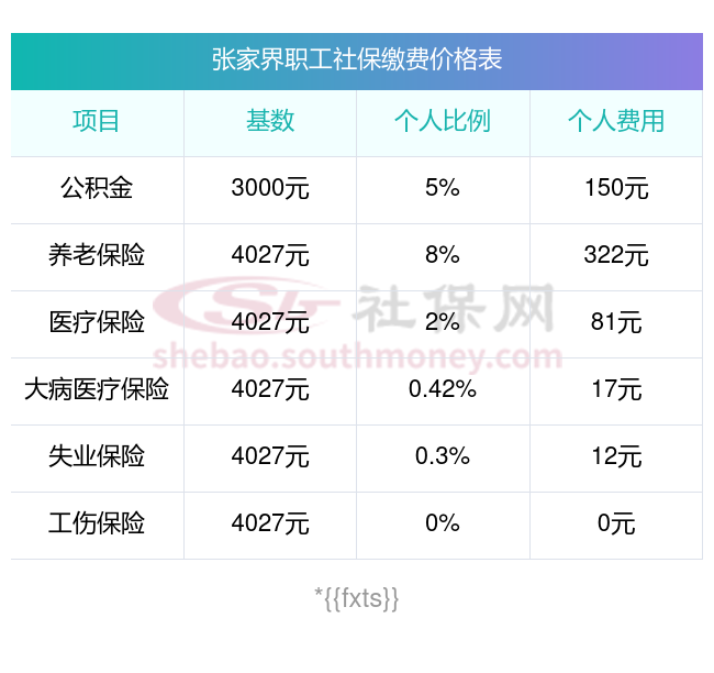 张家界社保缴纳比例公司和个人按照以下方式计算?: