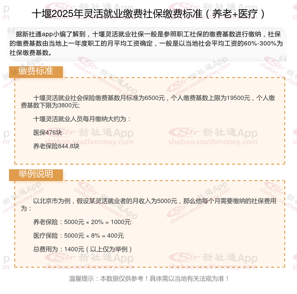 二、十堰2024-2025年灵活就业社保缴费基数及比例最新消息