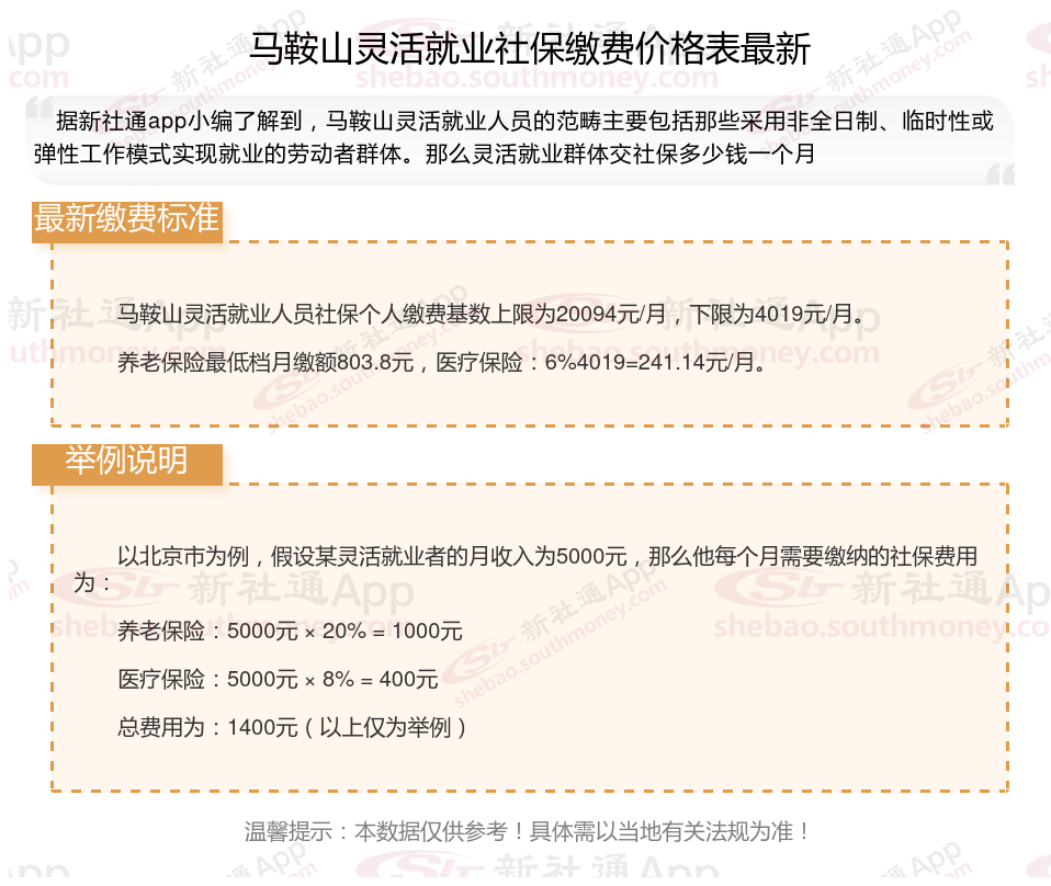 2025年马鞍山灵活就业人员社保需要交多少钱?随着经济社会的不断发展,灵活就业群体也日益壮大,其社保缴费问题也愈发受到关注。接下来随新社通APP小编一起来看看灵活就业群体社保缴费问题吧。