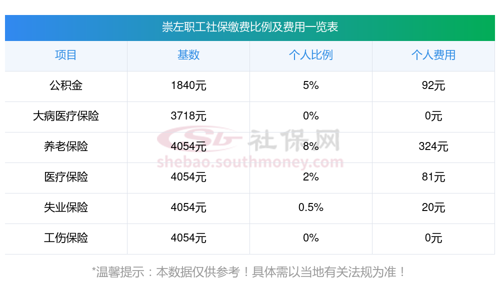 据新社通app显示,崇左社保缴费基数2025最新消息,崇左职工社保缴费详情如下: