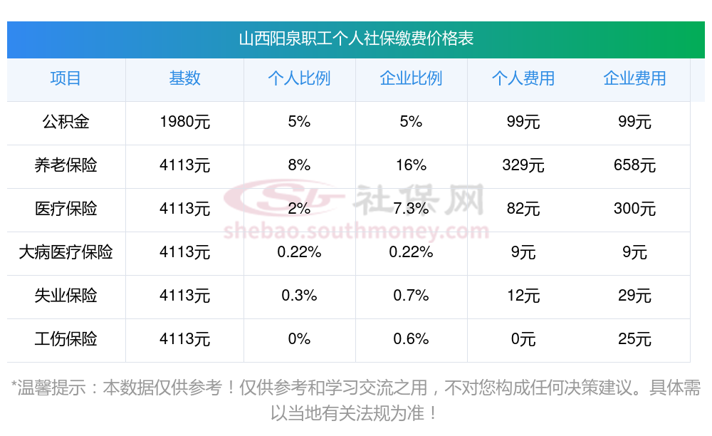 一、山西阳泉职工社保缴费多少钱一个月,2025年职工和公司社保各交多少钱?