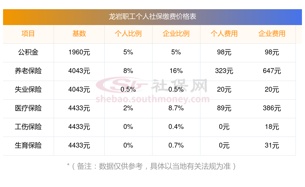 据新社通app显示,龙岩社保缴费基数2025年标准,(社保最低一个月要交多少钱)龙岩社保费用如下: