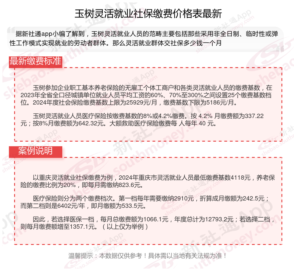 二、玉树2024年灵活就业社保缴费基数及比例最新消息