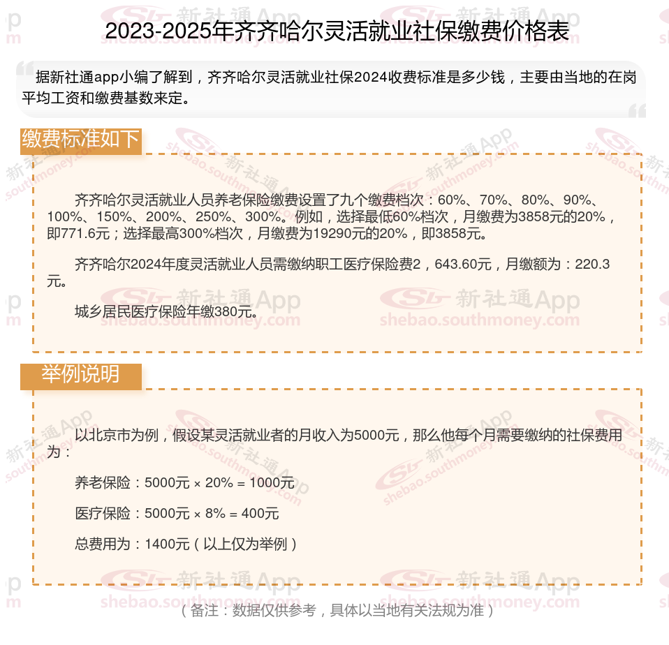 一、2024-2025年齐齐哈尔灵活就业社保缴费标准表齐齐哈尔灵活就业社保多少钱一个月?