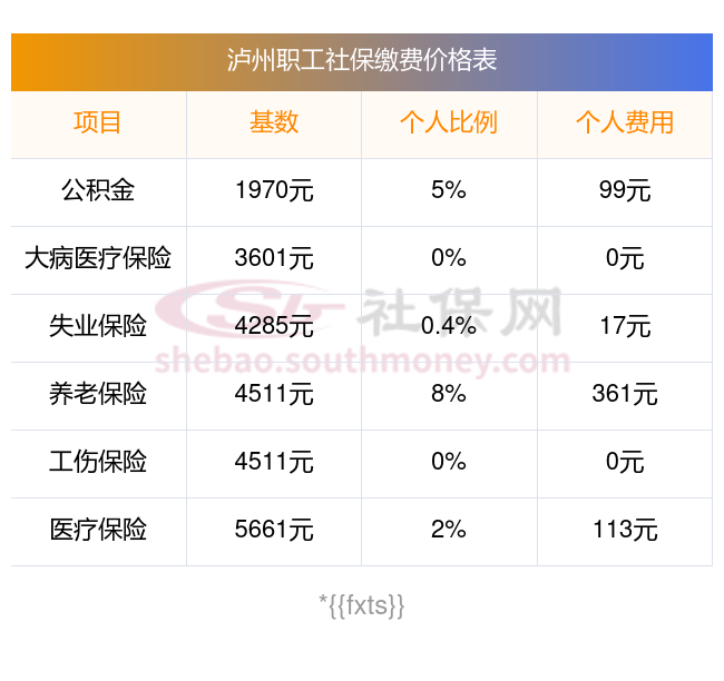 据新社通app显示,社保最低一个月要交多少钱?泸州社保缴费基数2025标准,泸州社保费用如下: