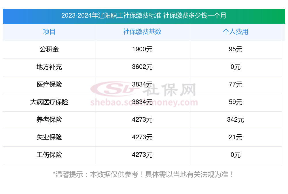 五险一金扣多少?辽阳五险一金扣多少钱?下表是2024-2025年辽阳社保费用明细参考,新社通app-社保缴费查询工具提供的最新数据如下: