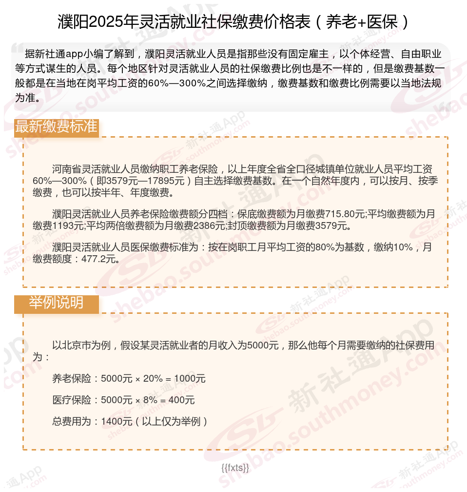 据新社通app数据显示,2024-2025年濮阳灵活就业人员养老保险的缴费标准是根据缴费基数来确定的: