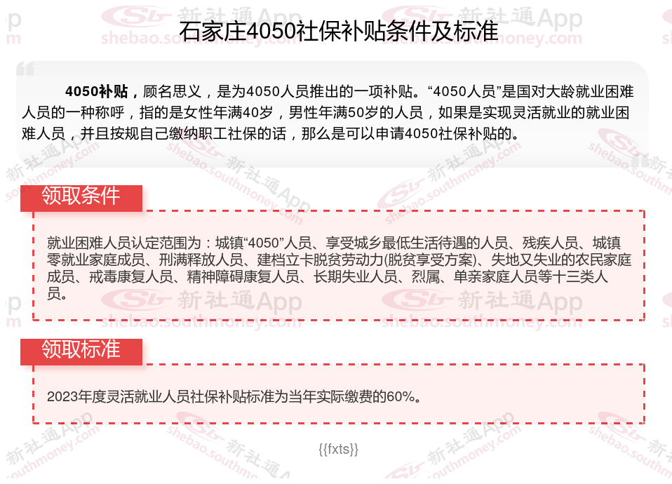 二、石家庄4050社保补贴标准及条件2025年,最新如下