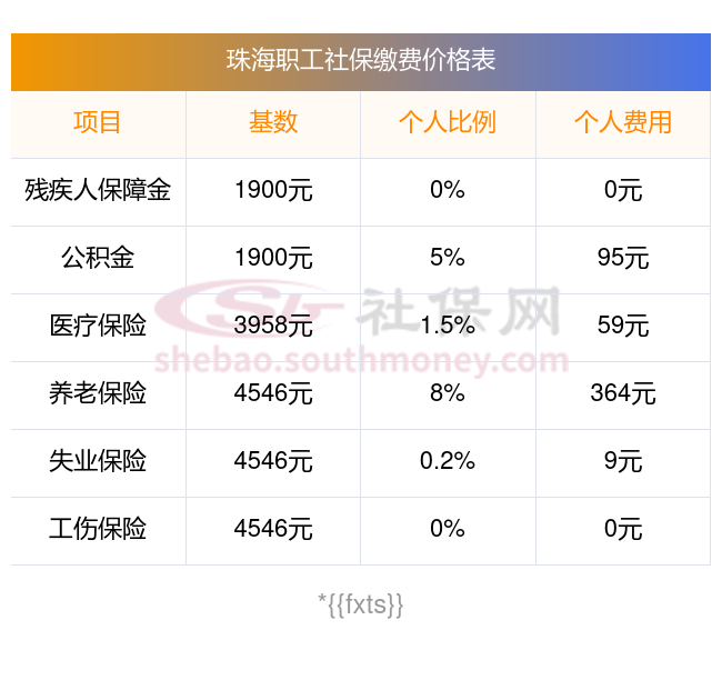 据新社通app显示,珠海社保缴费基数公积金缴费基数为:3579.00元,(2025社保最低一个月要交多少钱)珠海社保费用如下: