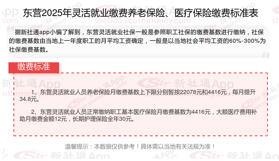 据新社通app数据显示,2024-2025年东营灵活就业人员养老保险的缴费标准: