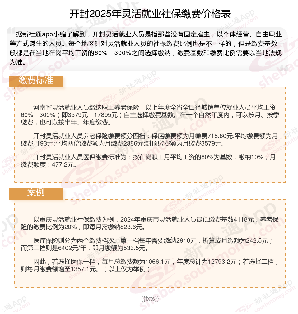 一、2024年开封灵活就业社保缴费标准表开封灵活就业社保多少钱一个月?