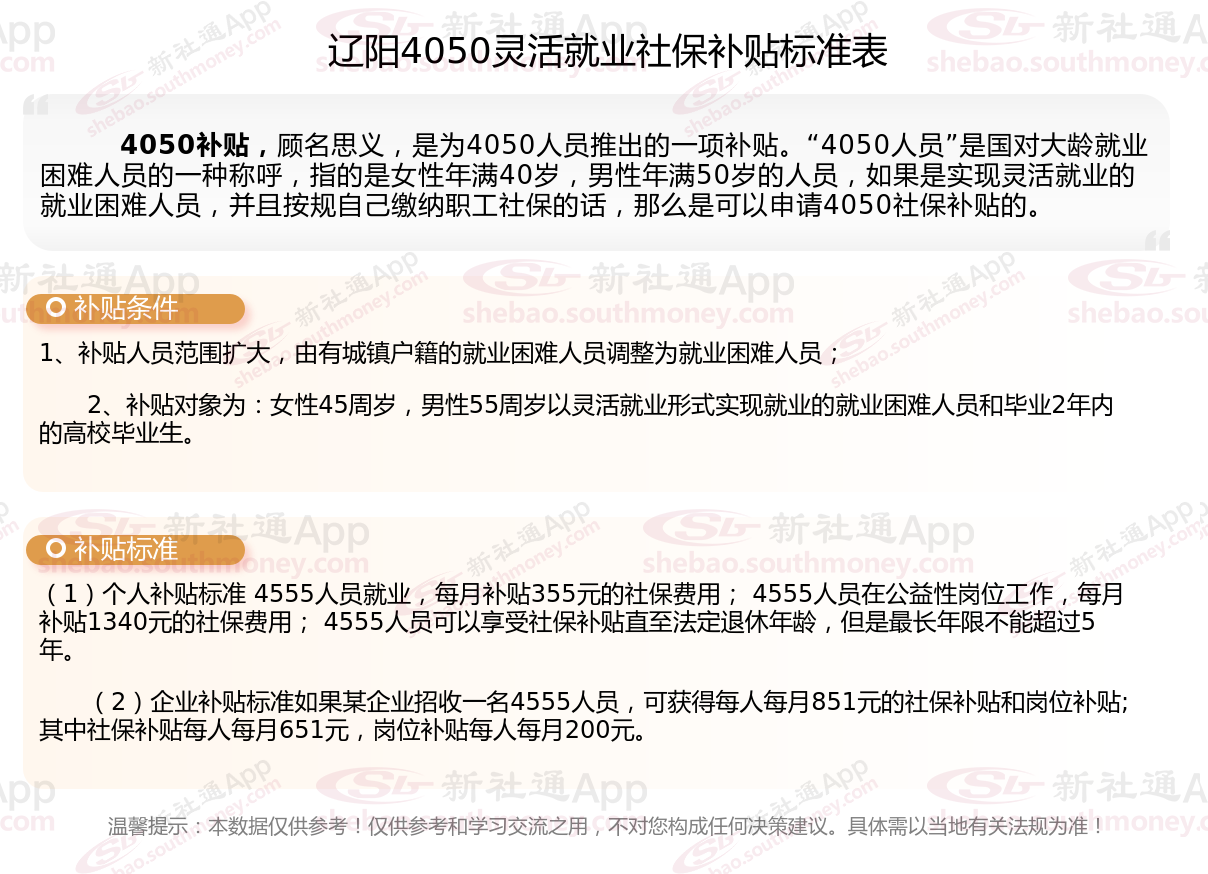 二、2025年辽阳4050社保补贴标准及条件,最新如下:
