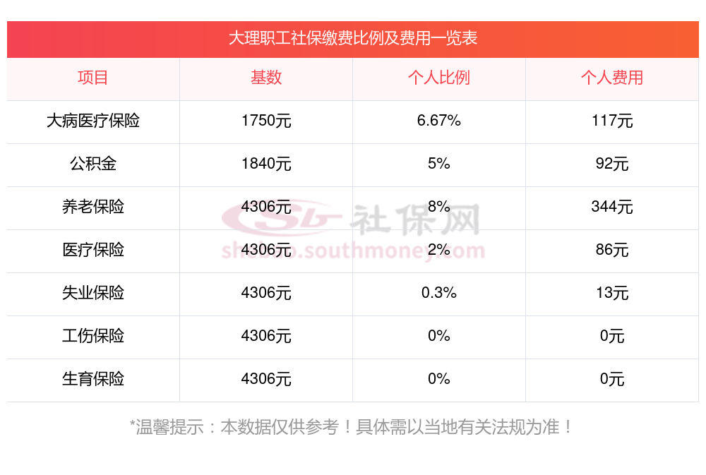 大理社保缴纳比例公司和个人按照以下方式计算?: