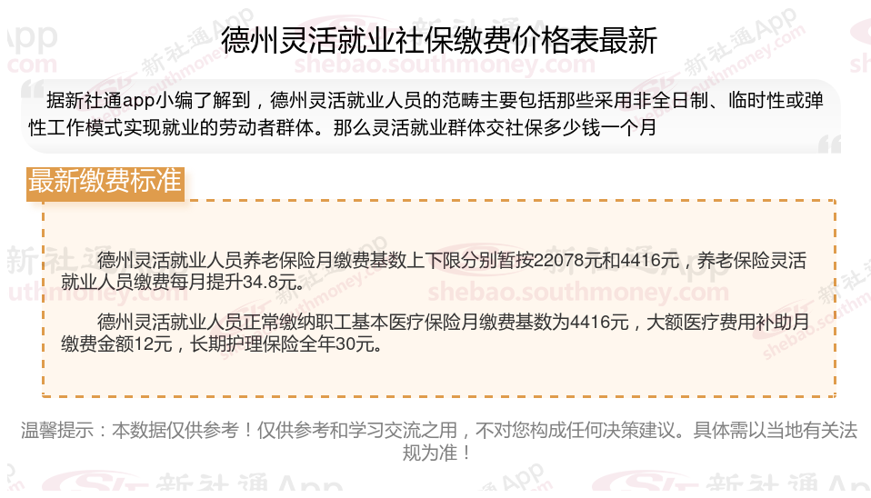 据新社通app数据显示,德州灵活就业养老缴费基数明细如下:
