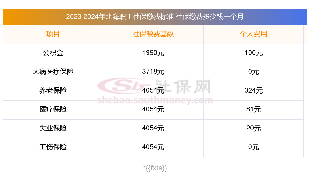 5险一金交多少钱一个月据新社通app获悉:北海企业职工社保缴费基数为:3579.00元