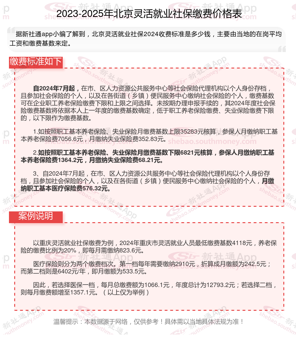 二、2024年北京灵活就业社保缴费标准表 北京灵活就业社保多少钱一个月?