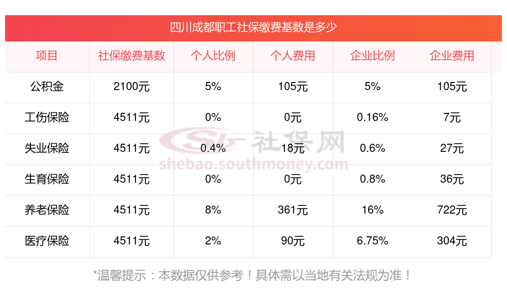 二、四川成都职工社保缴费基数是多少钱一个月?职工社保缴纳标准