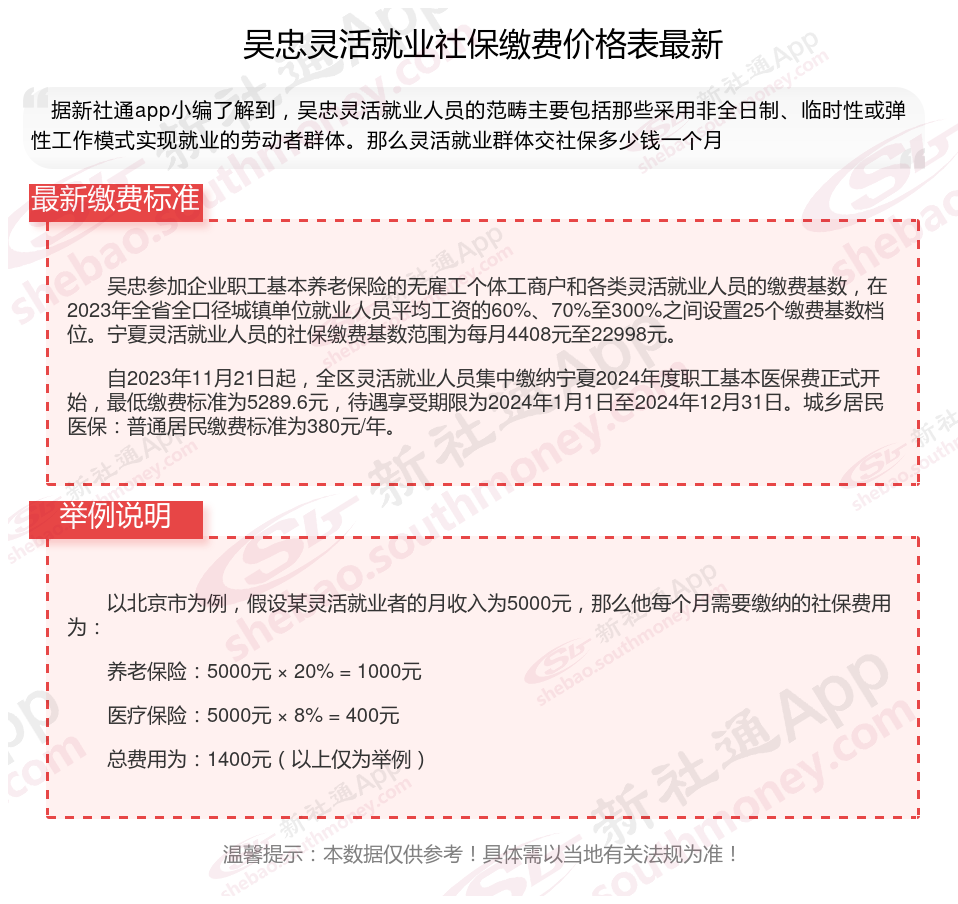 在吴忠,那些选择独立参保的灵活就业者,包括个体户和自由职业者,现在有机会加入企业职工基本养老保险体系。根据法规,这些参保者可以根据自身情况,在全省城镇单位就业人员平均工资的60%至300%范围内,挑选最适合自己的缴费基数。那么,关于吴忠2025年灵活就业人员的社保缴费标准是多少?以及每月需要缴纳的社保费用是多少,本文将为您提供最新的信息。