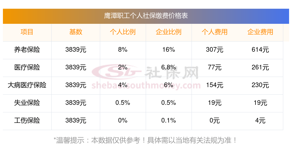 2025年鹰潭社保缴费多少钱?下表是2024-2025年鹰潭社保费用明细参考,新社通app-社保缴费查询工具提供的最新数据如下:
