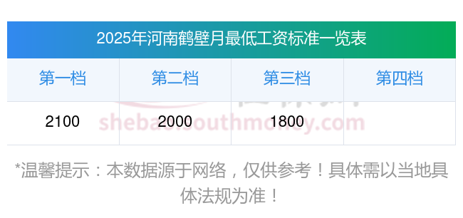 河南鹤壁最低工资标准是多少?河南鹤壁最低工资标准如下:
