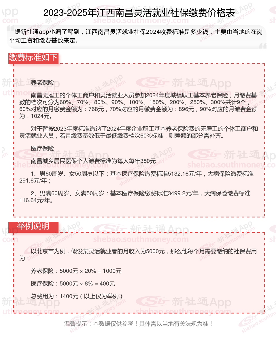 提示:江西南昌灵活就业人员每个月的缴费压力还是比较大的,每个月的社保费用都是千元,缴费档次越高,灵活就业人员要缴纳的费用也越多。
