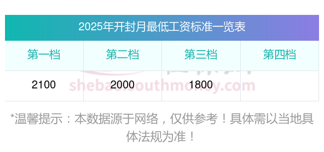 开封最低工资标准是多少?开封最低工资标准如下: