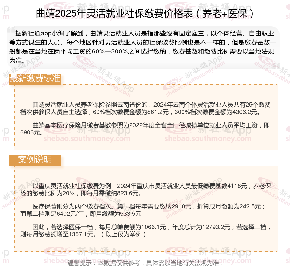 一、2025年曲靖灵活就业社保多少钱一个月?