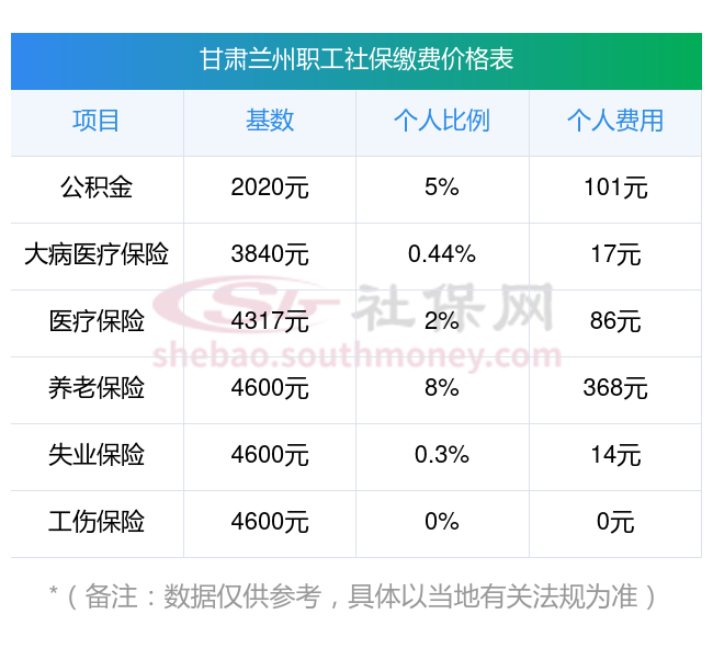 2025年甘肃兰州社保缴费多少钱?下表是2024-2025年甘肃兰州社保费用明细参考,新社通app-社保缴费查询工具提供的最新数据如下: