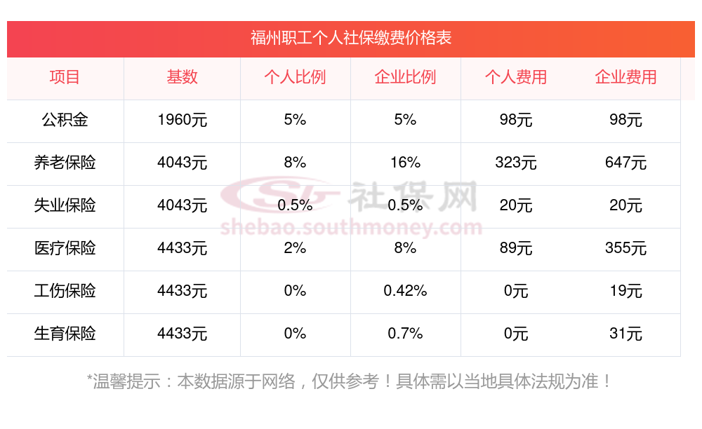失业保险:单位缴费费率为2%,职工个人缴费费率为1%,其中农民合同制工人不缴费。